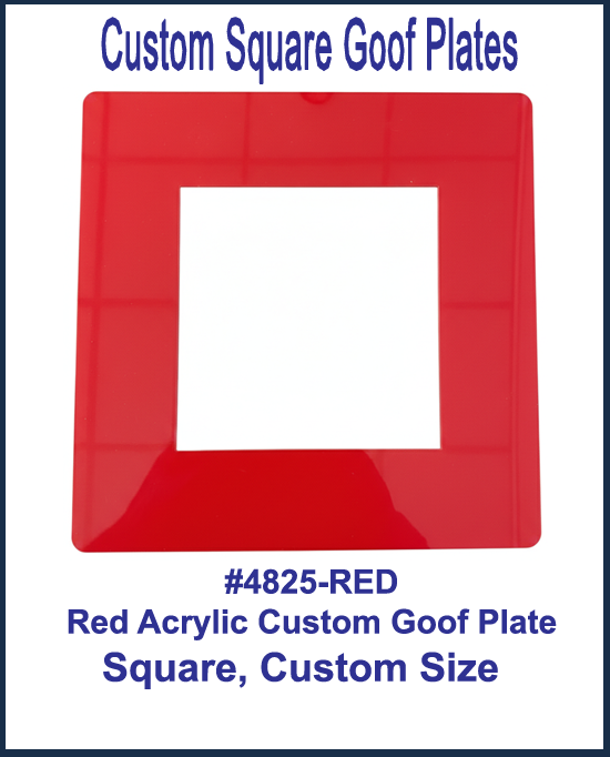 Smooth Red Acrylic Custom Square Goof Plates. Hide unfinished edges.