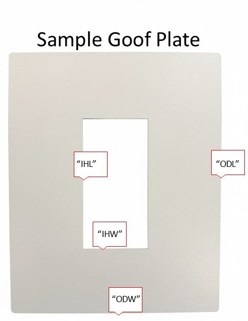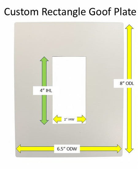 White Rectangular & Square Goof Plate, Hide gaps in sheetrock, wallboard, ceilings, ceiling tiles. Custom rectangle trim plates will hide voids and gaps around lighting, fire alarms, speakers, camera install.